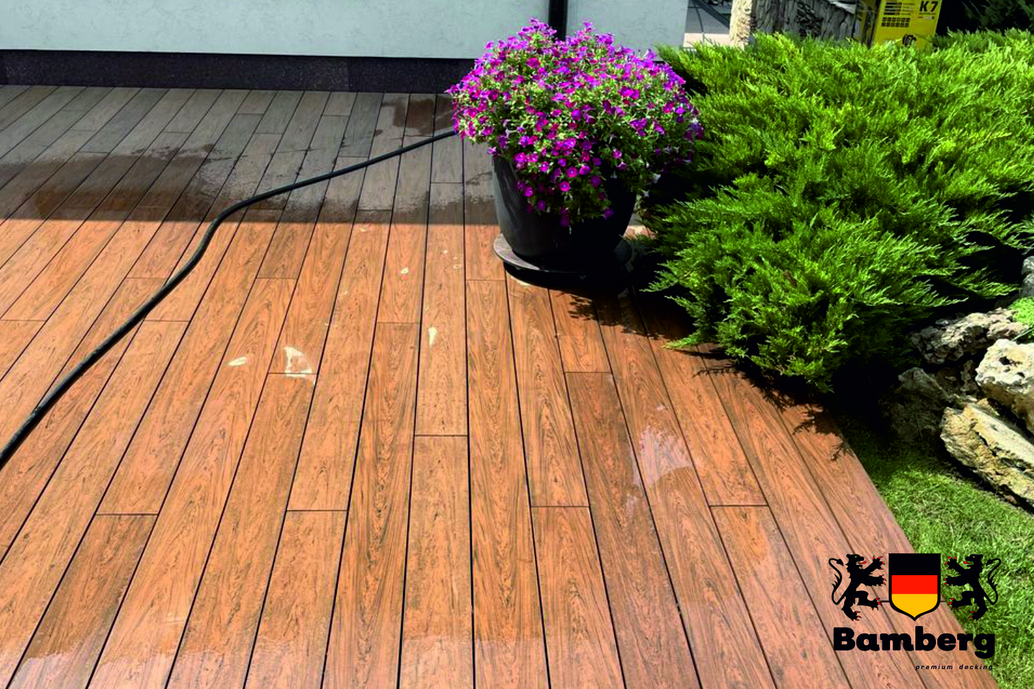 Купить террасную доску ДПК Bamberg Solid, Lebanese Cedar (Ливанский кедр) - значит инвестировать в качество и долговечность вашей террасы. Этот материал не требует особого ухода и легко моется, что делает его идеальным выбором для использования на открытом воздухе.